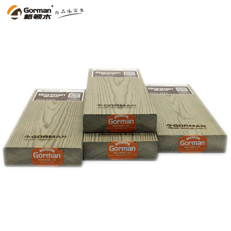 2、芬蘭防腐材是經(jīng)真空脫脂后,在密閉的高壓倉中灌注水溶性防腐劑ACQ,使藥汁浸入木材的深層細(xì)胞從而使木材具有抗真菌、防腐爛、防白蟻和其他寄生蟲的功能,且密度高、強(qiáng)度高、握釘力好、紋理清晰及具裝飾效果。